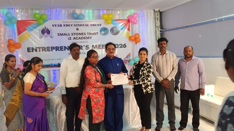 The I Year B.Com students actively participated in the Entrepreneur Meet 2026, held on 14th March 2026 at Padappai. The event was jointly organized by STAR Educational Trust and Small Stones Trust.