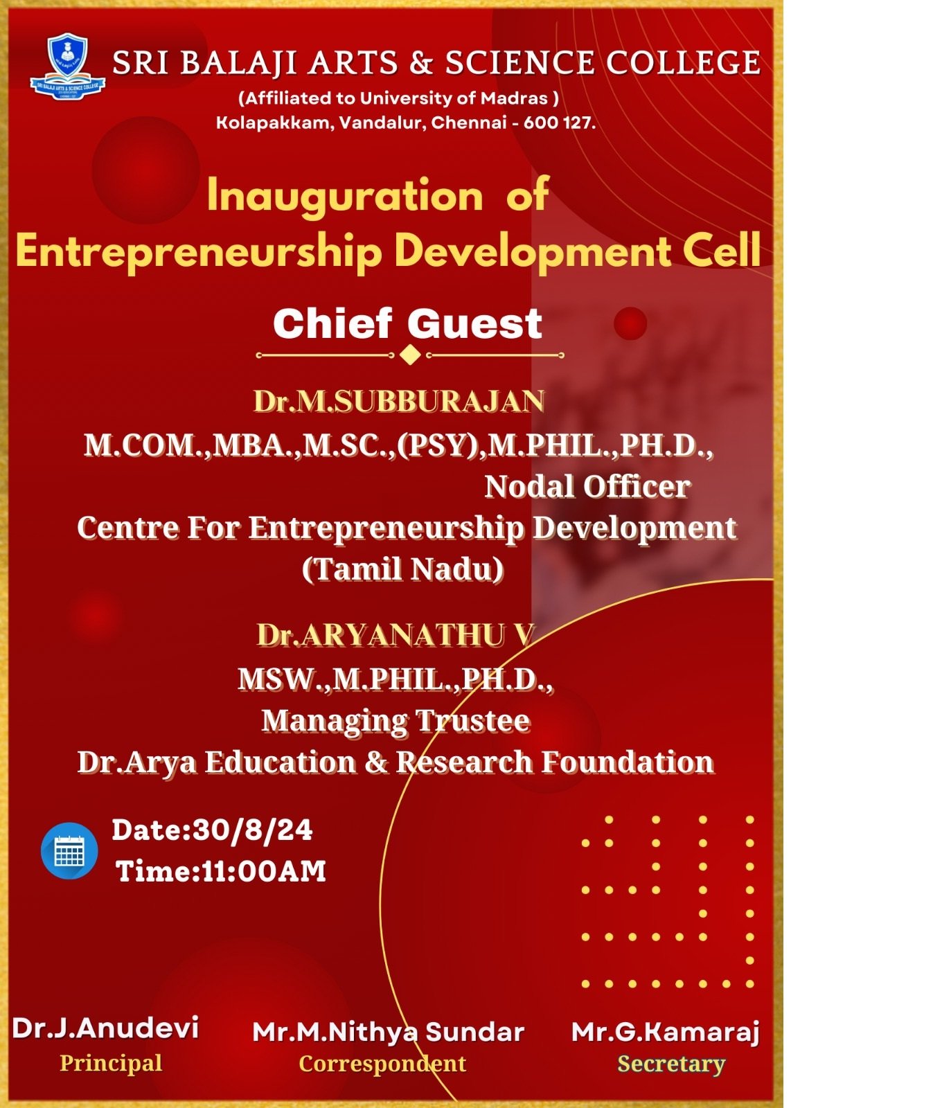 Sri Balaji Arts and Science College College Day- April 2023